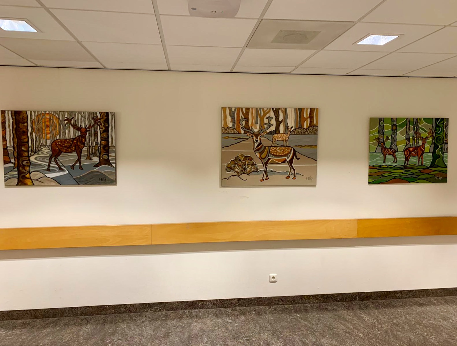 Het zorgpension in Ermelo ingericht met mijn schilderijen. Hier verblijven mensen tijdelijk na een ziekenhuisopname of operatie in een hotelachtige omgeving. Ik hoop dat het ze een beetje kleur en vrolijkheid brengt!