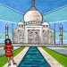 Tweede schilderij van een poserende dame bij de Eiffeltoren. Fantasievol, ontspannen en vrolijk geheel in een grafische, vlakmatige, geometrische en toch ook heel gelaagde stijl.